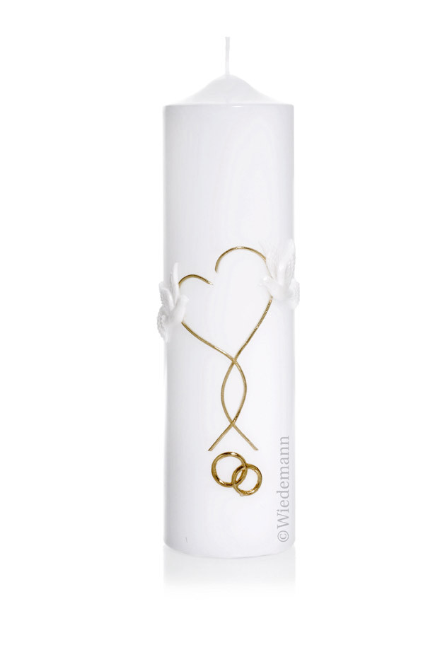 schön dekorierte Hochzeitskerze mit Wachsauflage