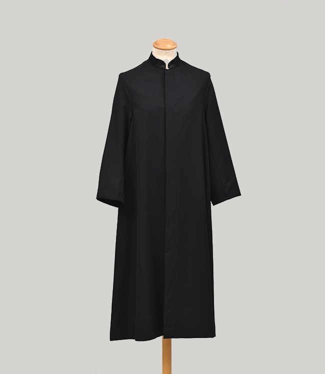 mit langem Arm, verdeckter Knopfleiste, Stehkragen.